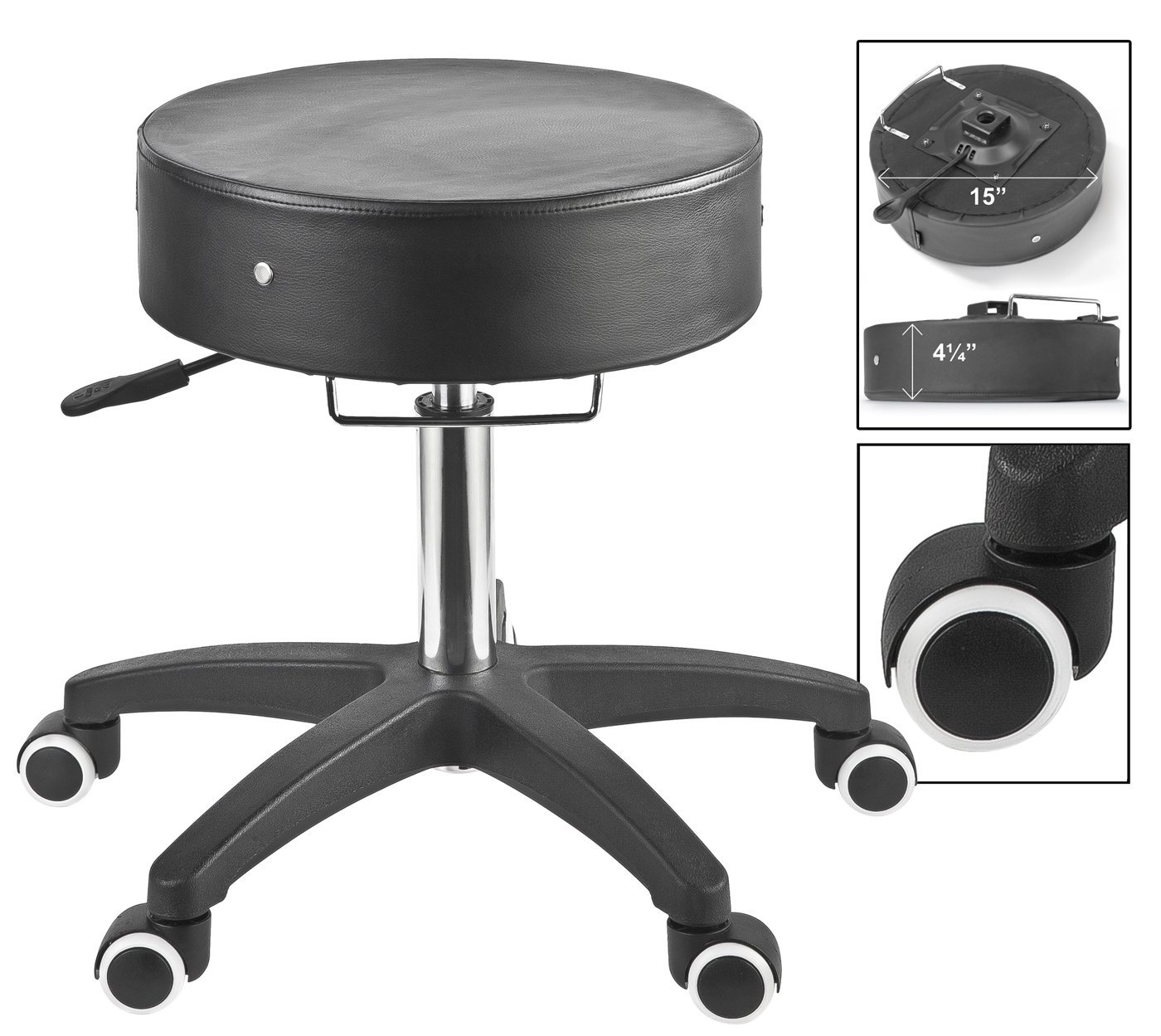 Master Massage Glider Adjustable Rolling Stool in Black with Chr
