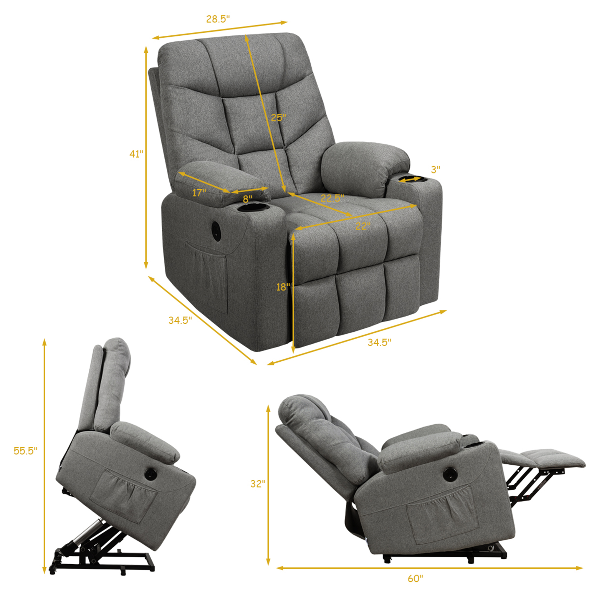 Gymax Power Lift Massage Recliner Fabric Sofa Chair w/ Remote Co