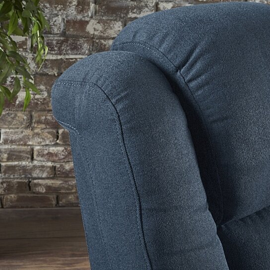 Everette Tufted Navy Blue Fabric Power Recliner with Arm Storage