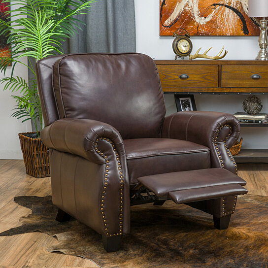 Jemma Tufted Brown Leather Swivel Gliding Recliner Chair