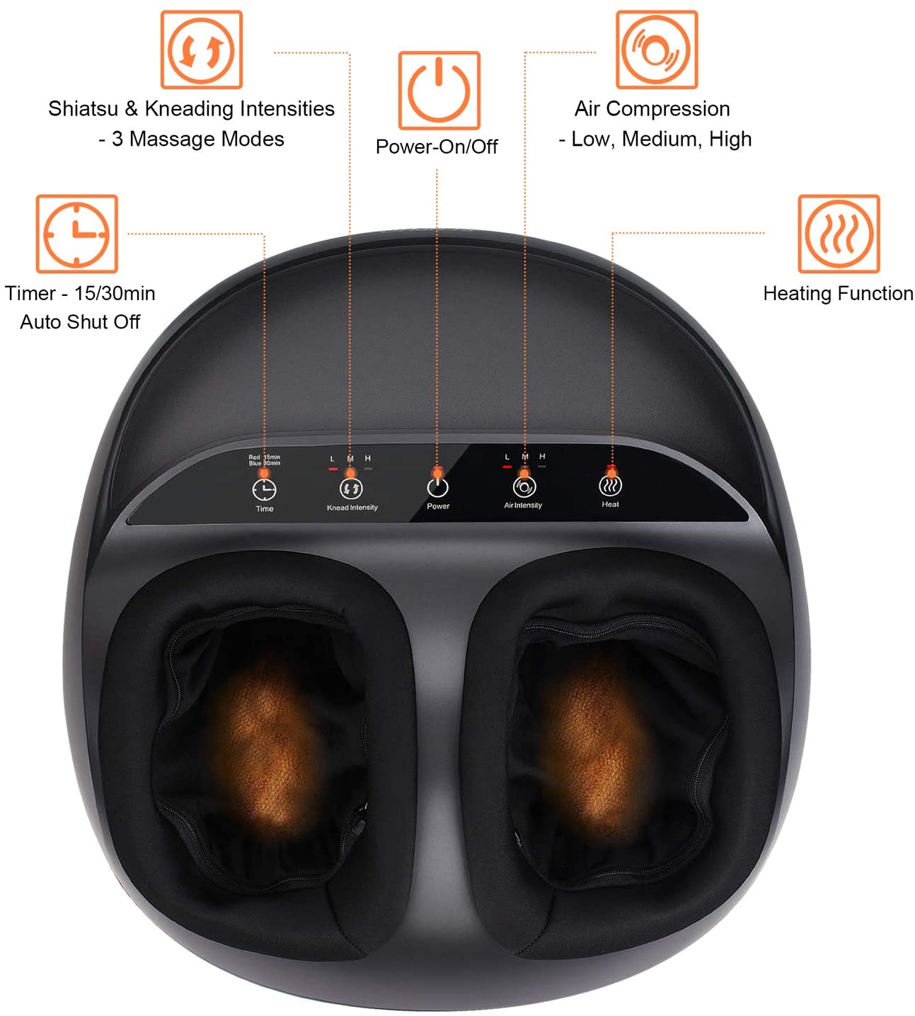 Shiatsu Foot Massager with Air Compression, Customizable Session