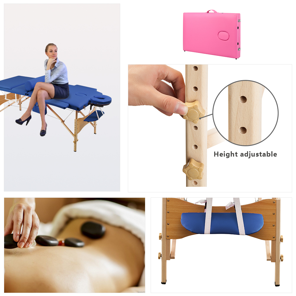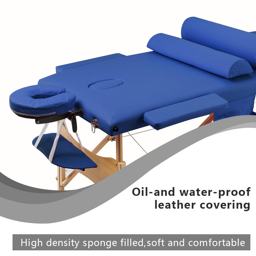 3 Sections Folding Portable Massage Table Set, Beauty Salon SPA Chair Tattoo Chair Bodybuilding, Blue Tattoo Table Massage Bed Aluminum Foot Fitted for Facials, Tattoo Sessions and Body Piercings