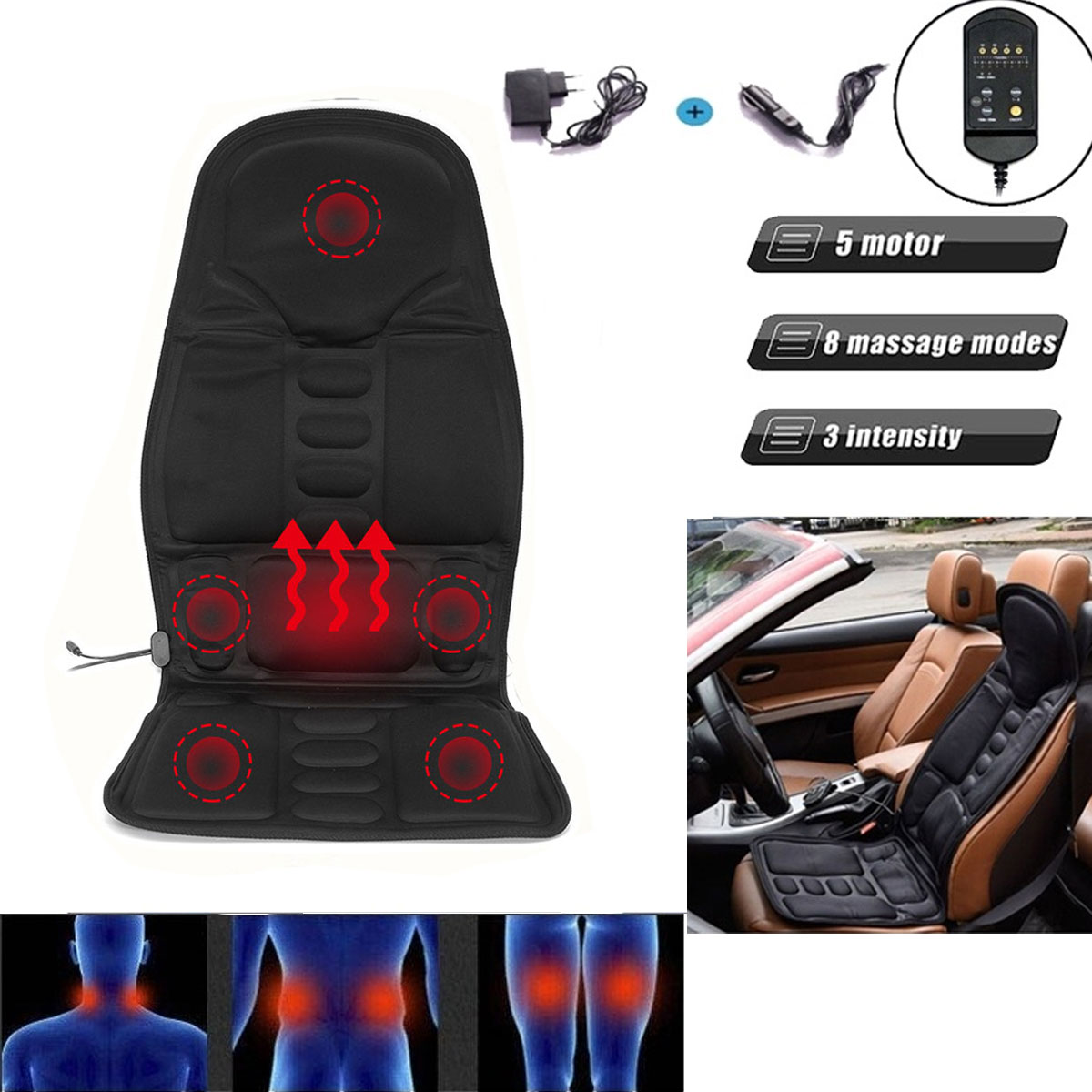 8 Mode 3 Intensity Car/Home Chair Seat Cushion Full Body Electric Therapy Vibration Shiatsu Kneading Rolling Vibration Massager Mat Pad with Heat Full Back & Neck Leg Hips Lumbar