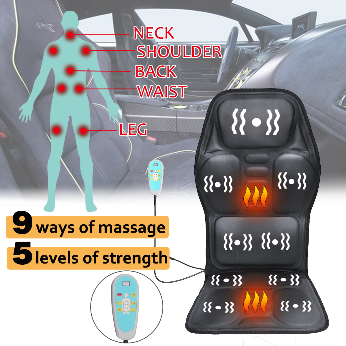 9 Point 5 Intensity Full Body Electric Kneading Rolling Vibration Back Neck Lumbar Shiatsu Massager Use in Car Home Office Chair Seat Massage Mat Pad Seat Cushion