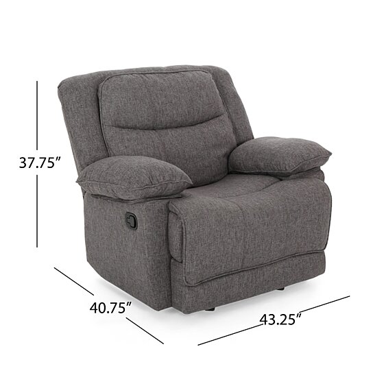 This contemporary recliner is the perfect addition for any room in your home. Featuring pillow-top arms along with a seat cover styled cushion, this recliner is both comfy and cozy. With the added benefit of the glider function, and the easy latch release system, this recliner is sure to be a fan favorite in the family.