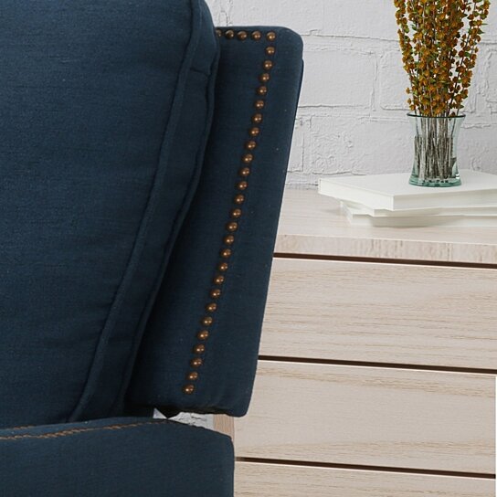 This push back recliner is a wonderful addition to any style home. Featuring a classic design with stud covered frame, this recliner is a statement in and of itself. With extra plush cushions and a plush seat backing, you can't go wrong with this recliner. Sure to become your favorite chair in no time.
