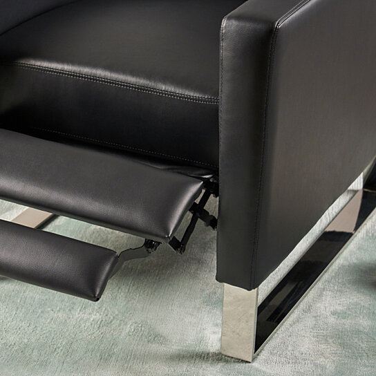 STAINLESS STEEL LEGS: Supported by stainless steel legs, this recliner is finished with a stunning accent. Not only does this emphasize the modern look of this piece with its silver finish, but these legs also provide substantial support with its stainless steel make.