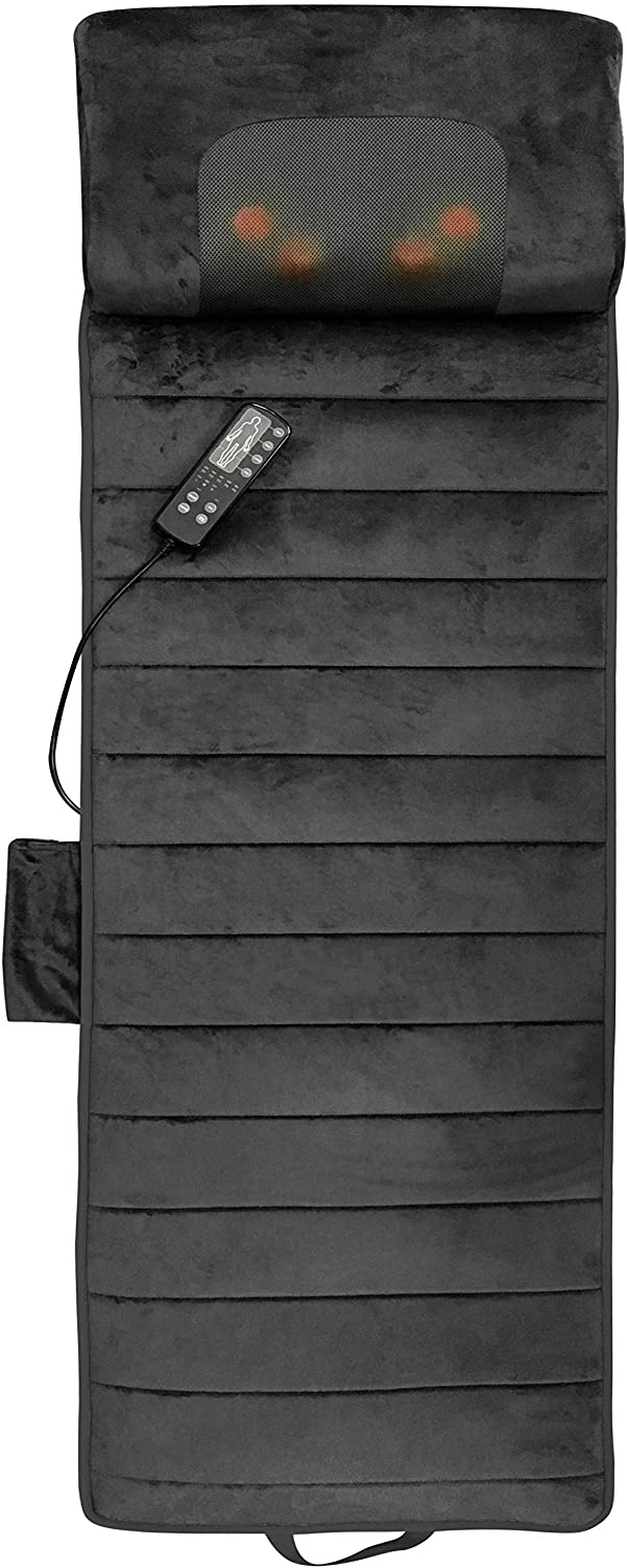 • FULL BODY MASSAGE MAT – The Belmint vibrating mat for full body uses 10 powerful vibration motors that give you a therapeutic, soothing, and relaxing massage that penetrates your body to help release tension, stress, fatigue after a long day. [Note: The mat is not a Shiatsu or kneading massager with rolling balls. Its a vibration massager. Pillow does have 4 kneading shiatsu massage nodes]