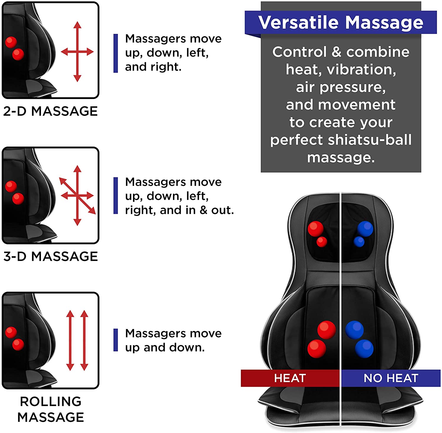 HEAT FUNCTION: Shiatsu balls in the backrest and neck use infrared heat to relax the muscles, circulate the blood, and provide a more complete massage