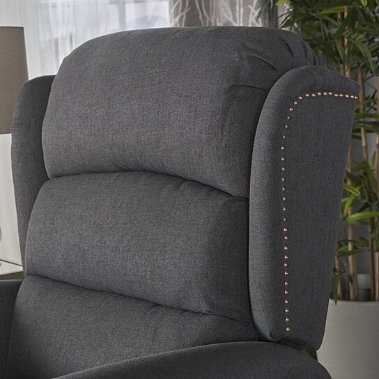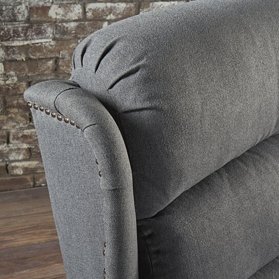 This traditional recliner features the utmost in comfort and design. Highly durable, it offers a range of motor-powered adjustment and an exceedingly comfortable tufted back. Features charming decorative upholstery tacks on its arm.