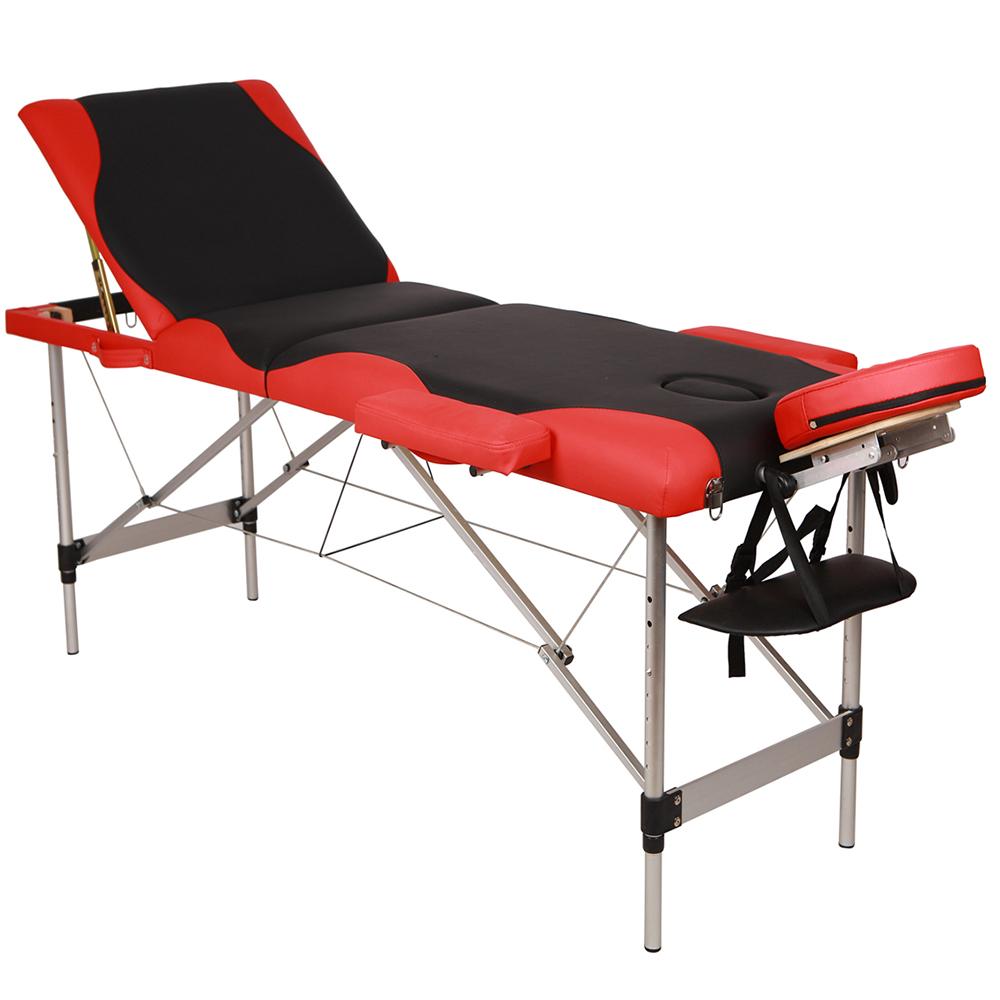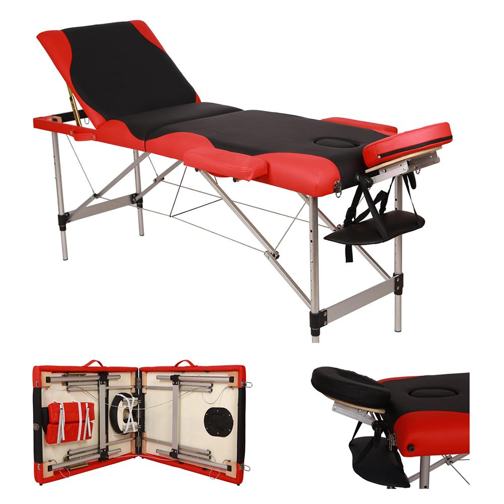 Dettelin 3 Sections Folding Aluminum Tube SPA Bodybuilding Massage Table Black with Red Edge