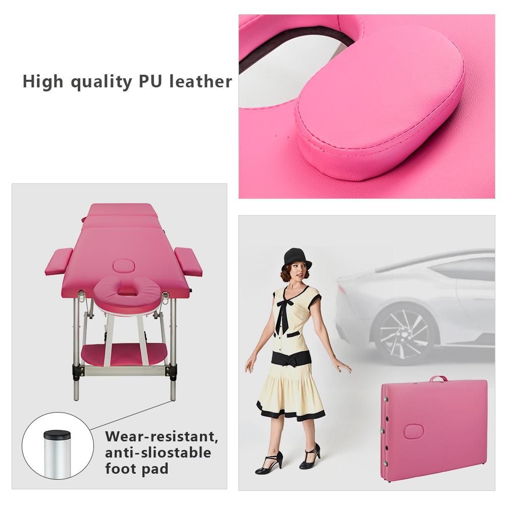 Dettelin 3 Sections Folding Portable Aluminum Foot Beauty Massage Table 60CM Wide Pink