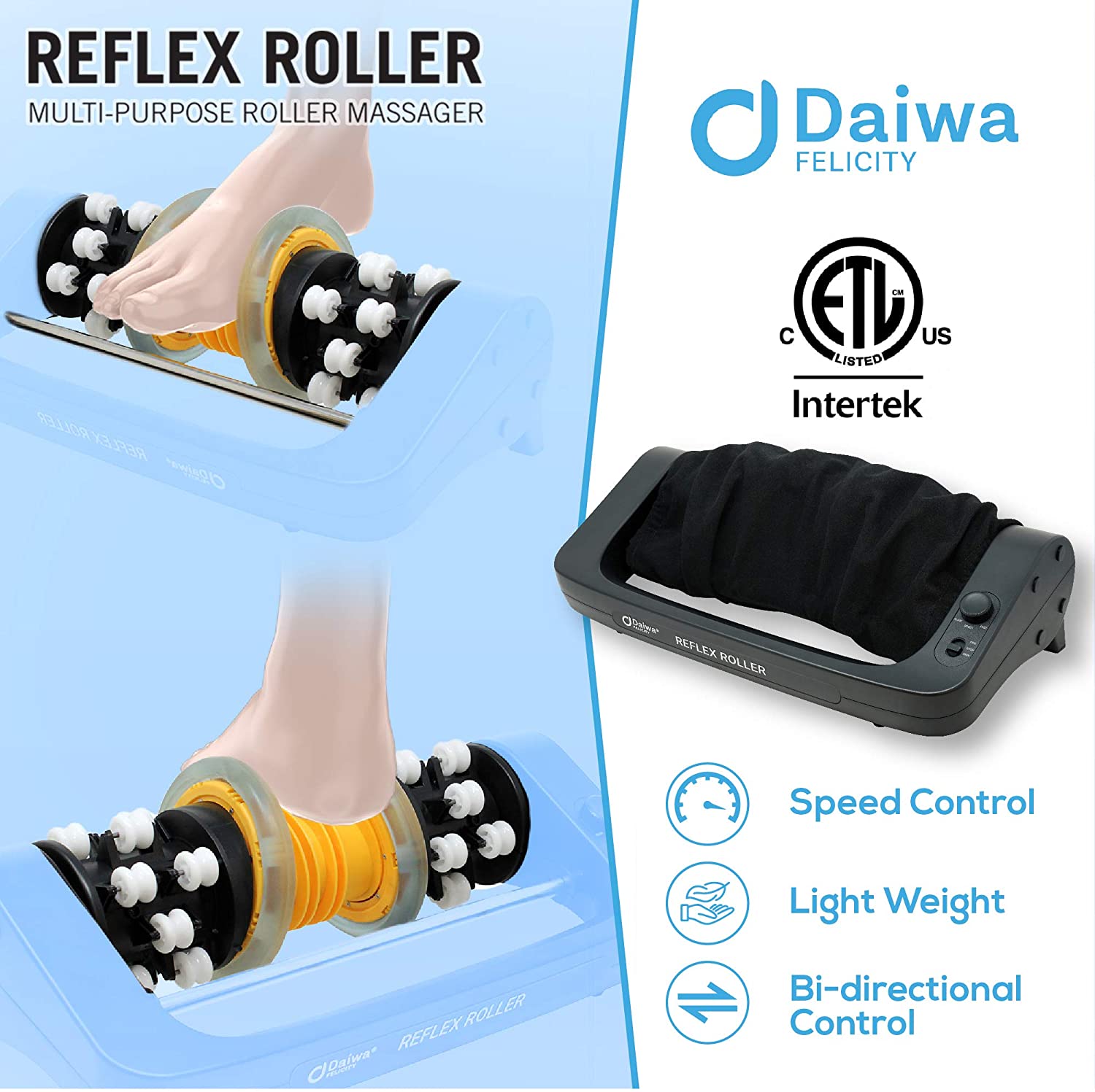 • Exclusive Roller Design: U.S. Jaclean has been innovating health and wellness product for 35 years. Our special designed roller can provide a strong and effective kneading motion for your body. Try our Reflex Roller to feel our special designed rollerWith shiatsu massage and kneading massage, works as a neck massager, foot, calf, and thigh massager.