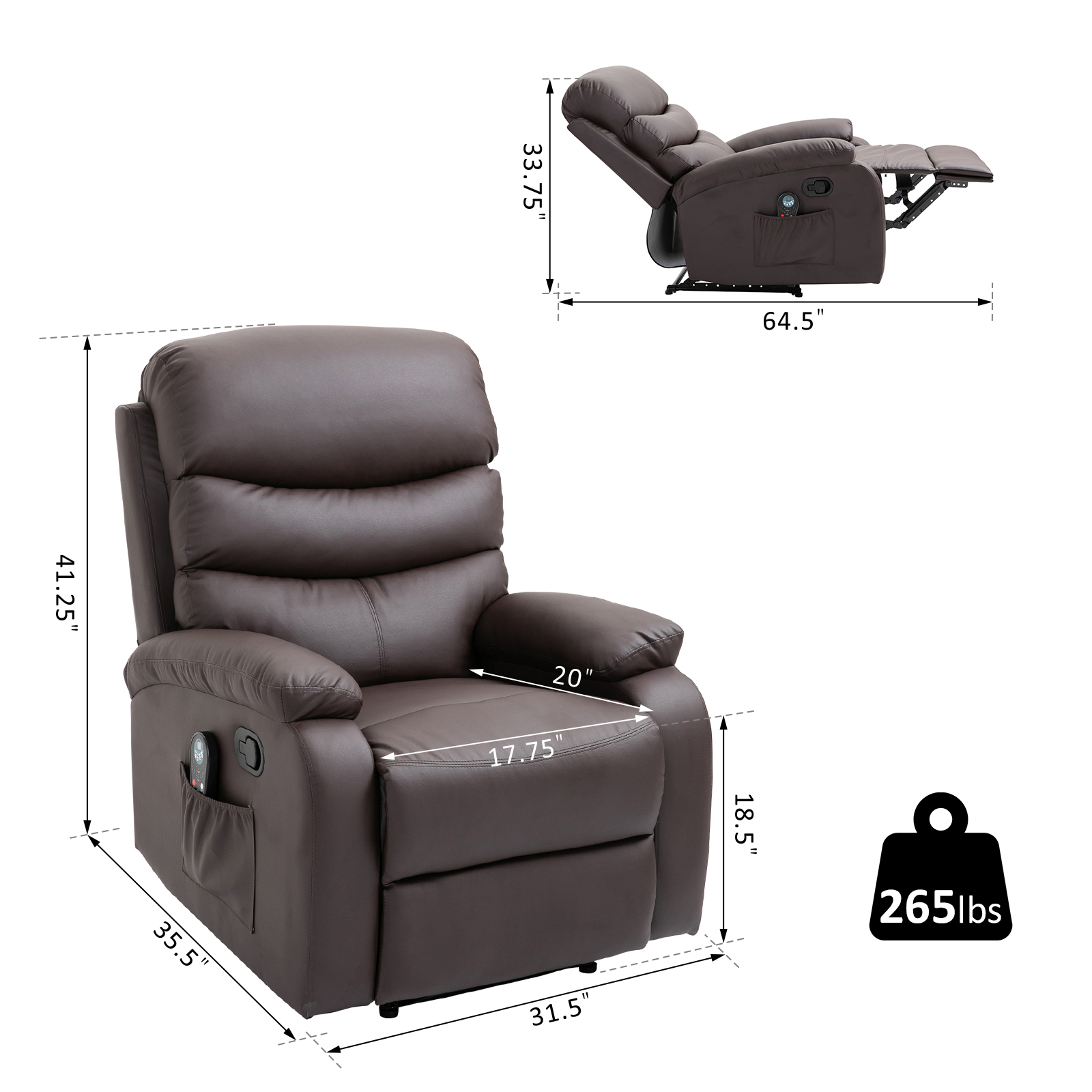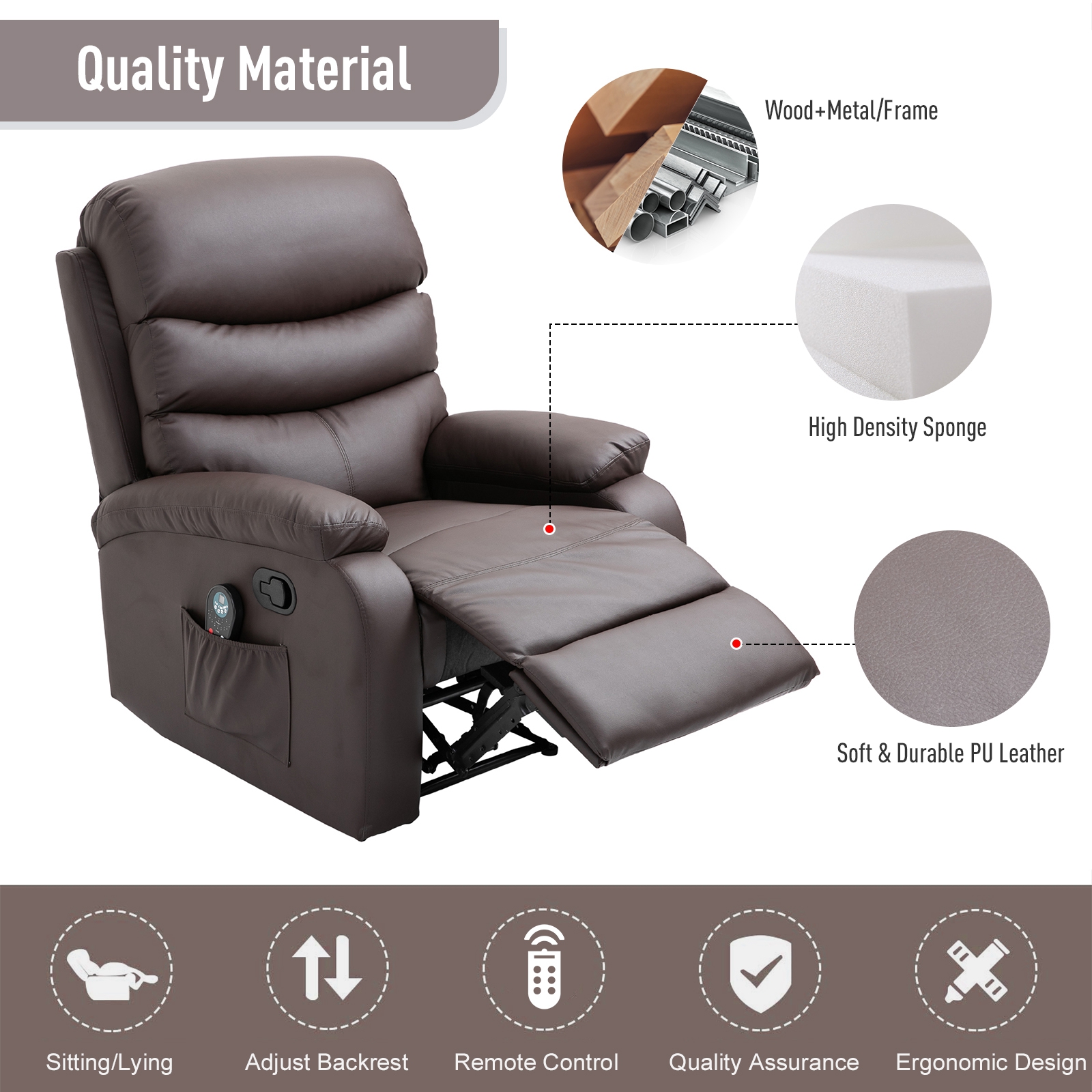 HOMCOM Manual Massage Recliner Chair with Heat and Remote Control, 8 Massaging Points, PU Leather