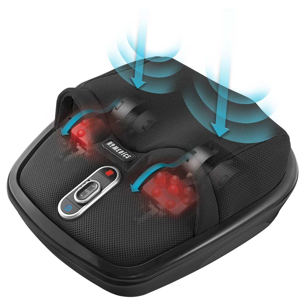 AIR COMPRESSION HELPS WITH CIRCULATION: The HoMedics Heated Air Compression Foot Massager's compression function lightly tightens and releases your feet, allowing blood to re-circulate throughout your foot. Choose from low, medium, high compression, or turn the compression off completely. The Low and high air intensity gives the perfect foot massage