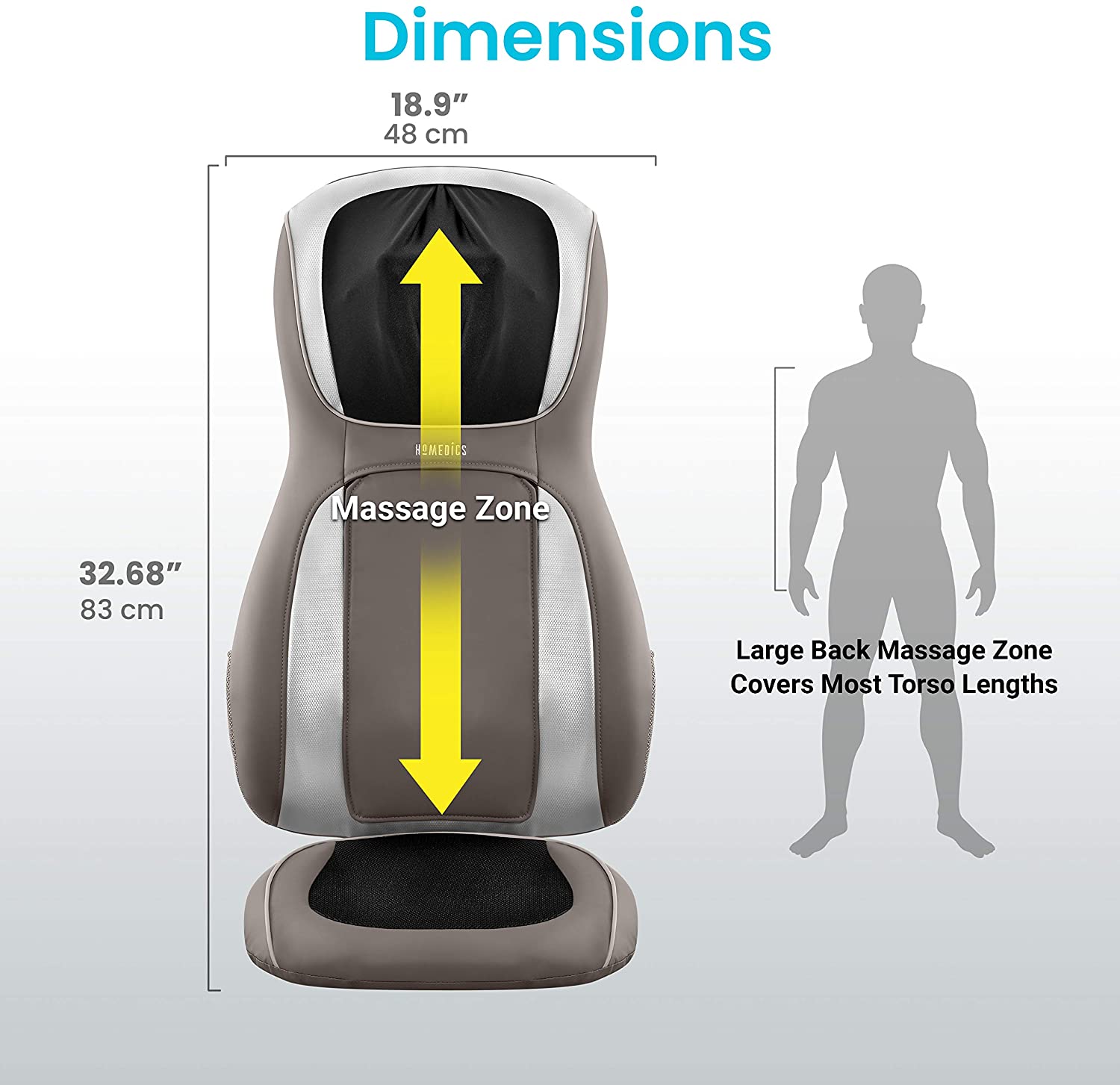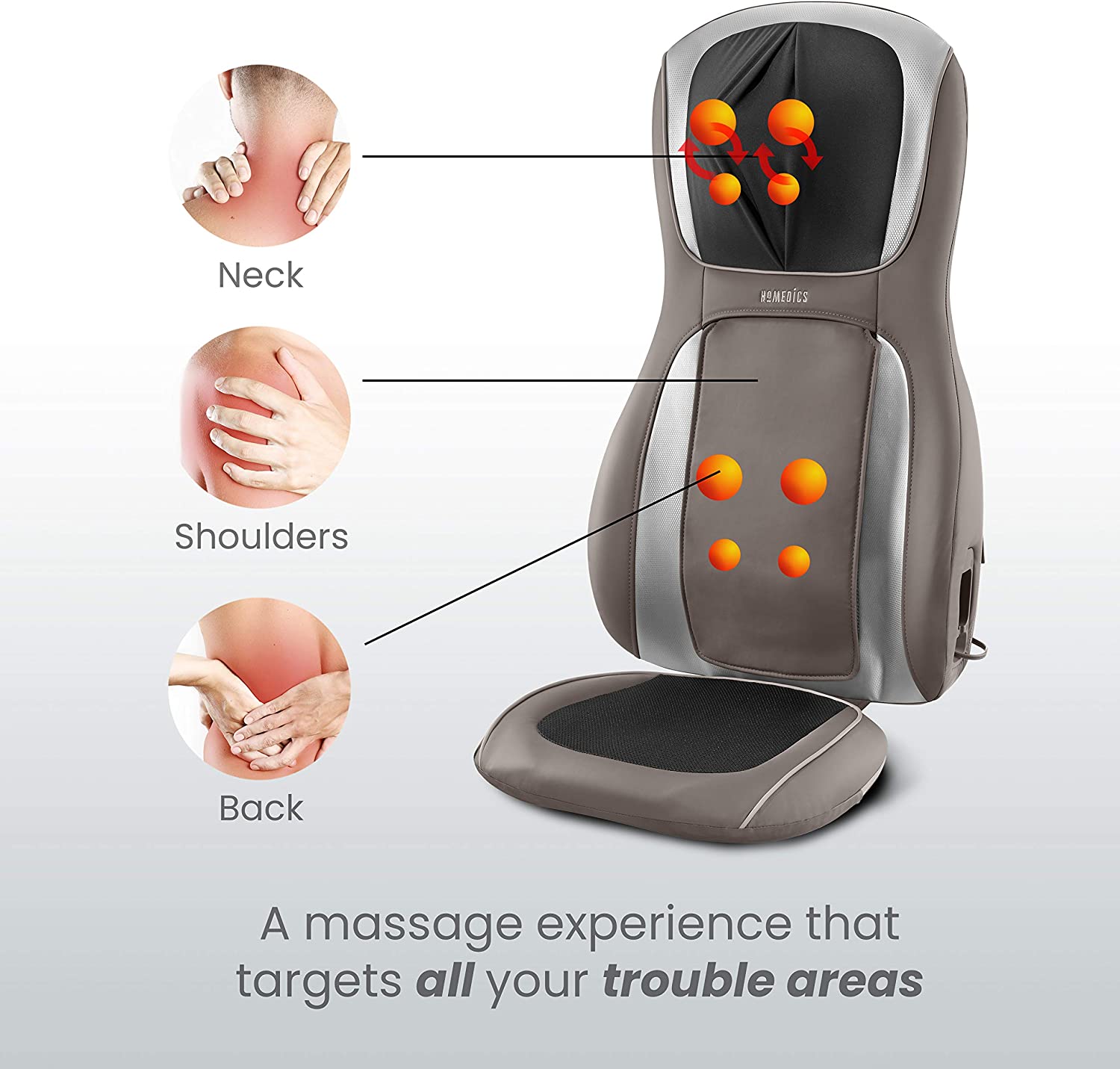 • CUSTOMIZABLE MASSAGE SEAT: The neck and shoulder massager adjust to your height, allowing any member of the family to use this heated massager. The seat cushion massager also reverses direction, giving you the option of a traveling massage or targeted spot massage allowing you to pinpoint a specific area that needs relaxing