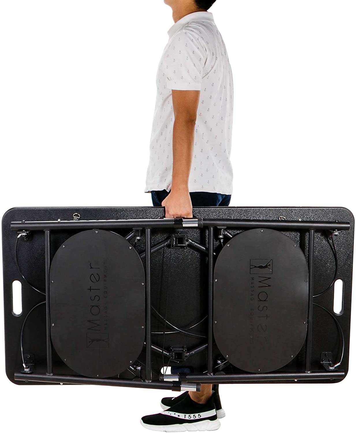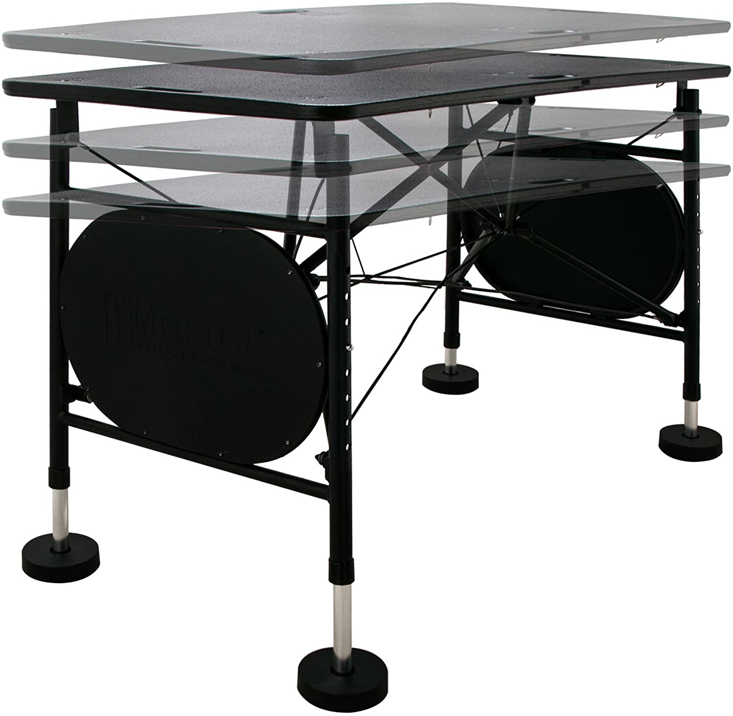 47" Length x 23.6" Width x 26.3" to 35.2" height adjustable. Table weight is 22lbs. Working capacity is 550lbs.