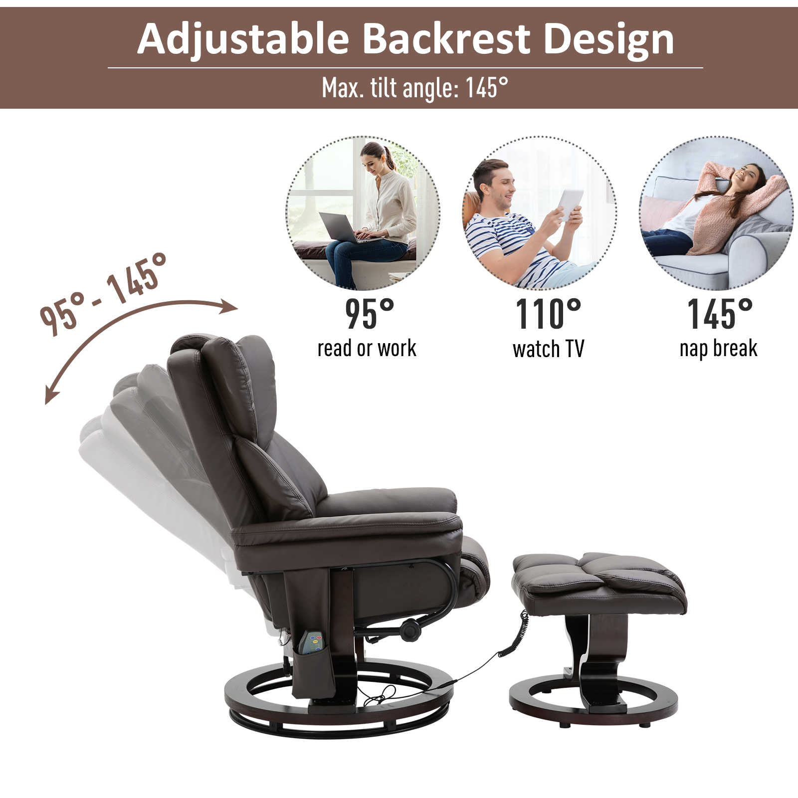 Massage Recliner Chair with Footrest, 10 Vibration Levels, Faux