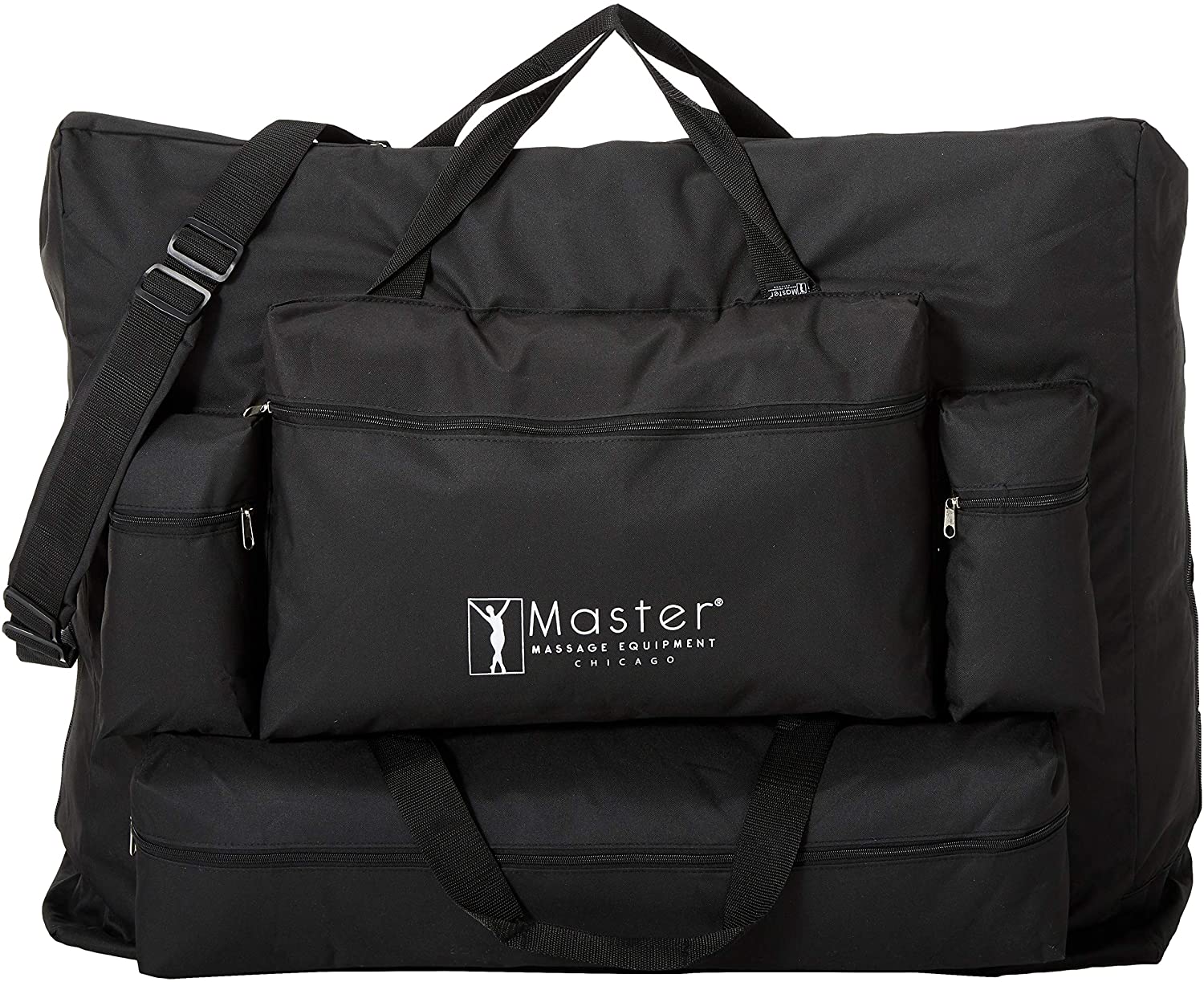 Accessories include: ErgonomicDream face cradle and memory foam face cushion, fully padded arm shelf, detachable side armrests, matching plush neck bolster, and a four-pocket carrying case
