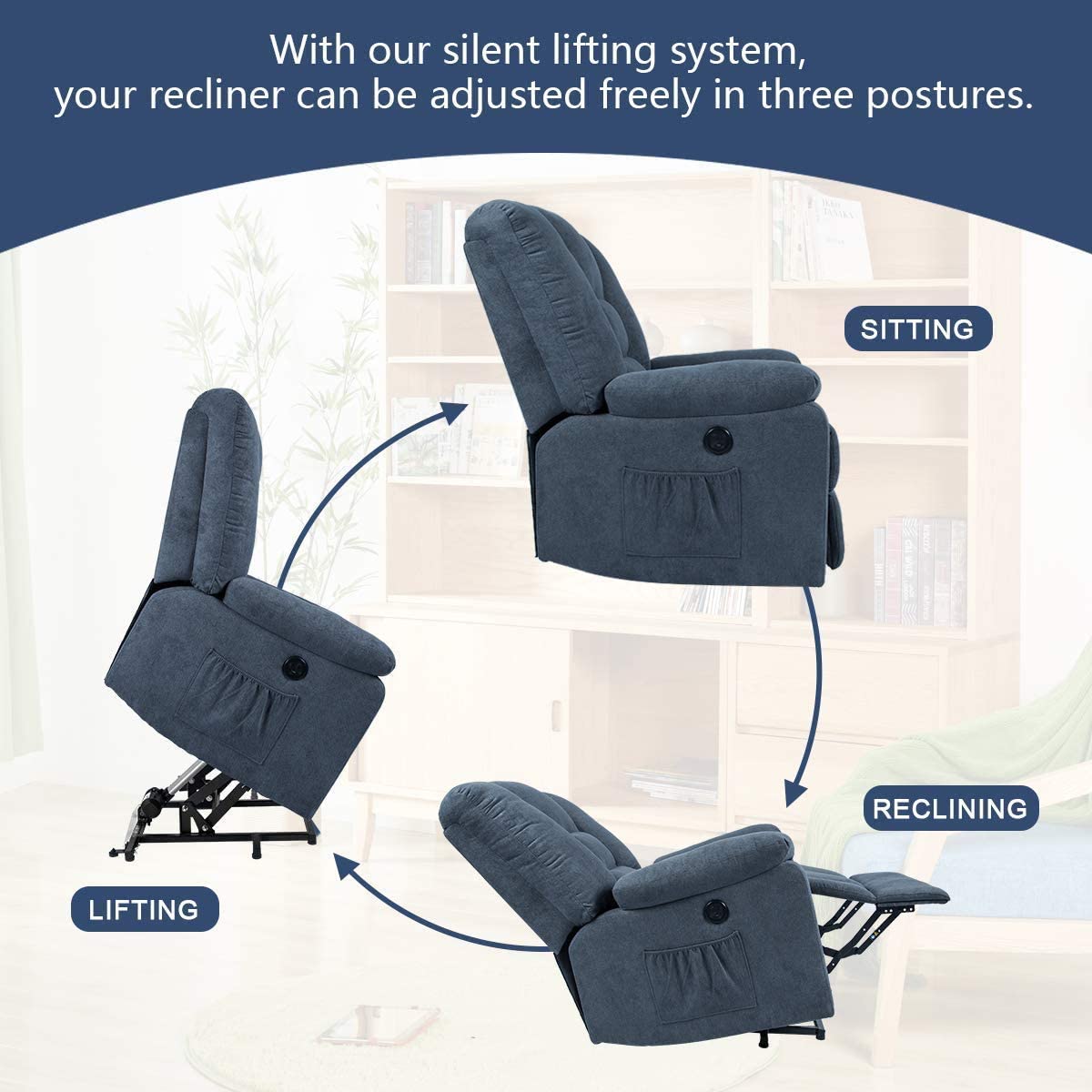 Microfiber Power Lift Electric Recliner Chair with Heated Vibration Massage Sofa Fabric Living Room Chair with 2 Side Pockets, USB Charge Port & Remote Control, Blue