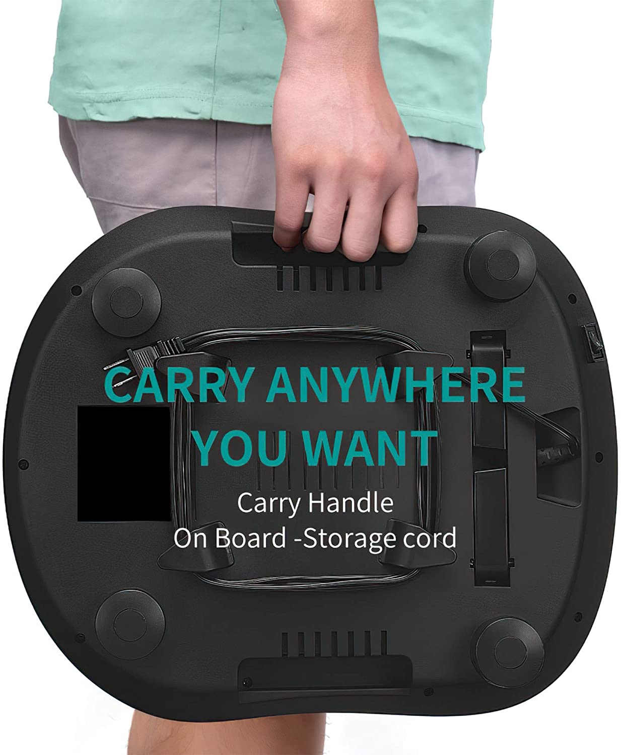 PORTABLE AND EASY OPERATION: You don't need to bend down just to turn on the massager. You can access the power button and set its mode by just simply touching it using your toe! Plus, it has a built-in on-board cord storage and carry handle for your convenience.