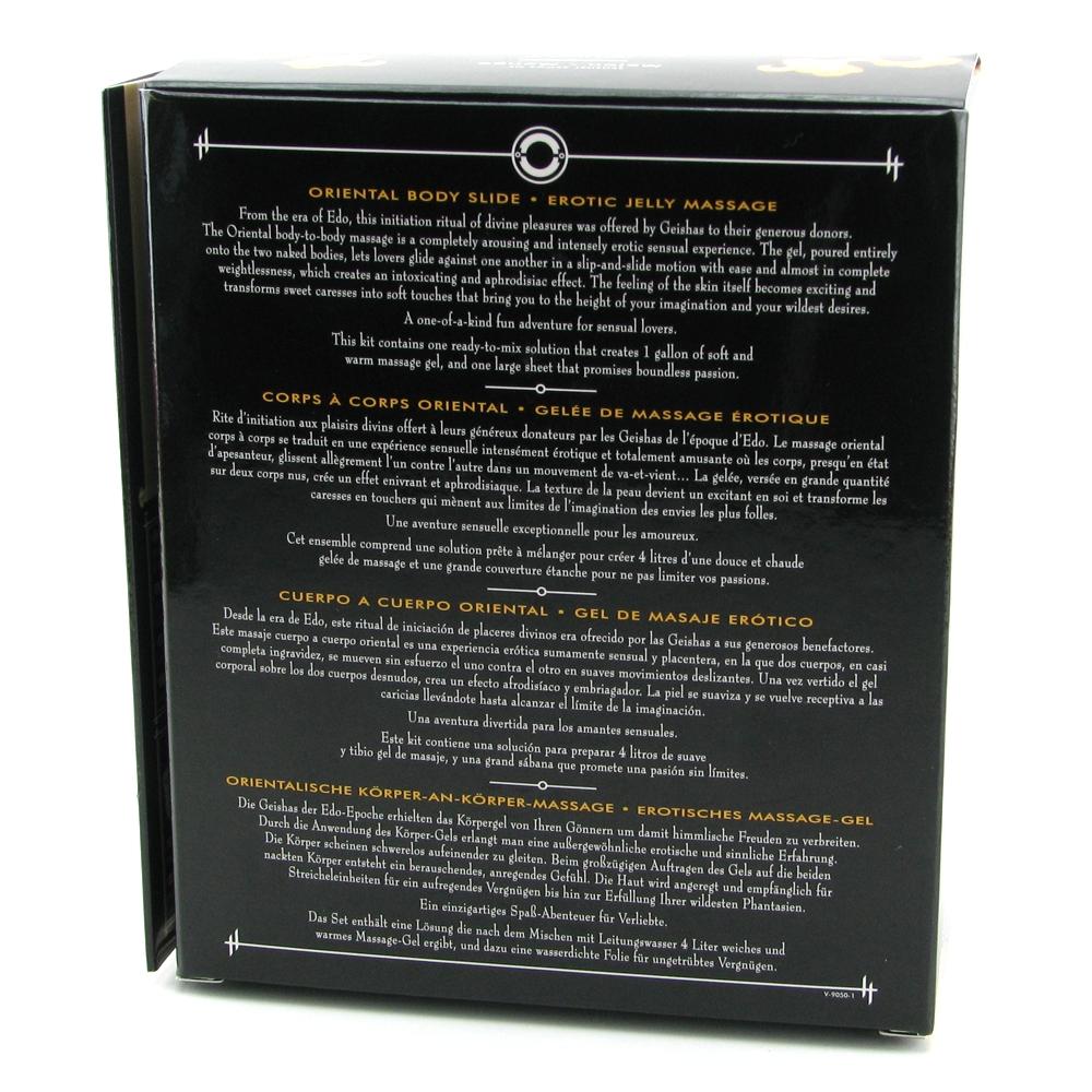 Experience the pleasures of full body to body contact with your object of desire. This type of massage is a completely arousing, absolutely intimate treat, with sweet scented massage gel poured completely over your two naked bodies. Covered in slick, silky oil, your bodies become almost weightless as they slide and grind against each other with no friction, just pleasure. The feeling of skin on skin takes on a whole new dimension, and will bring you closer than ever to your lover. A large waterproof sheet is included, it needs to be placed overtop of a square of rolled up towels to create a play space for hours of sensual fun. The mix makes 1 gallon/4 liters of delicious Strawberries & Champagne oil.