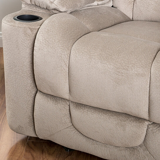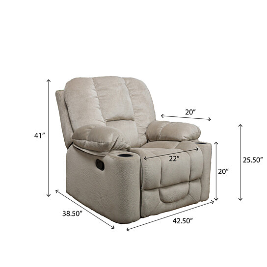 If you are looking to relax in the lap of comfort and accessibility, then look no further than the Gannon Fabric Gliding Recliner. Available in select colors, this recliner is sure to make you feel relaxed after a long day's work. This recliner boasts two cup holders on either end of the chair, allowing you to keep both a drink and the remote close at hand, meaning you never have to leave your chair! ??????.. For the most part.