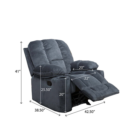 If you are looking to relax in the lap of comfort and accessibility, then look no further than the Gannon Fabric Gliding Recliner. Available in select colors, this recliner is sure to make you feel relaxed after a long day's work. This recliner boasts two cup holders on either end of the chair, allowing you to keep both a drink and the remote close at hand, meaning you never have to leave your chair! ??????.. For the most part.