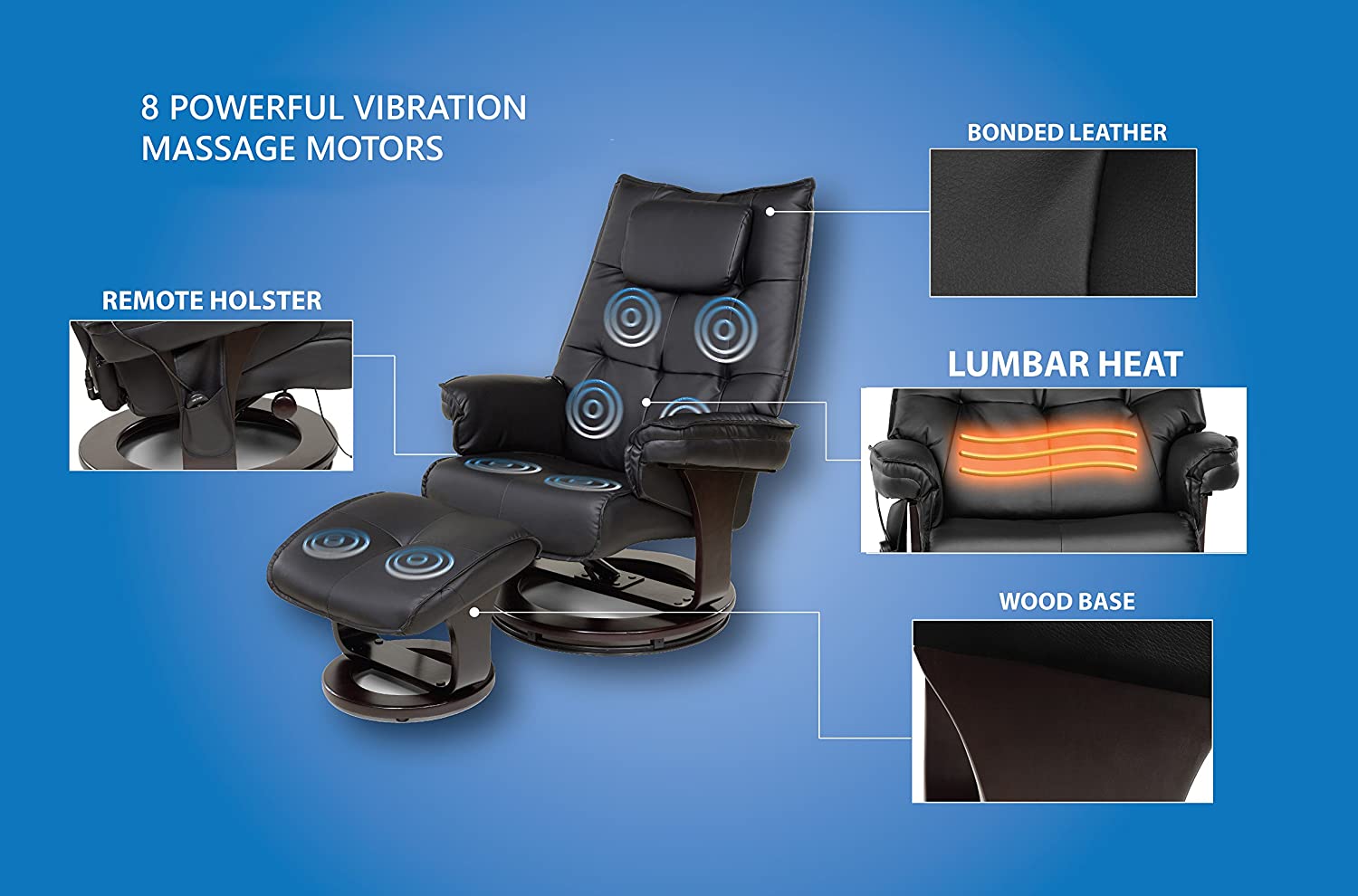 Relaxzen 8-Motor Massage Recliner with Lumbar Heat and Ottoman,