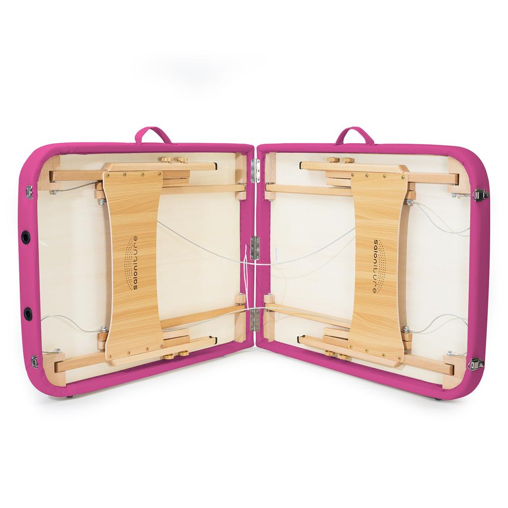 This Saloniture portable massage table combines luxurious comfort in a convenient, fold-and-carry design ideal for both certified massage therapists as well as at-home bodywork enthusiasts.