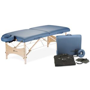 Combining affordable value with performance, the Saloniture portable all-inclusive folding massage table package offers a complete massage solution. Includes a professional grade massage table, deluxe adjustable headrest, armrests, and a heavy-duty, nylon carry case with pockets.