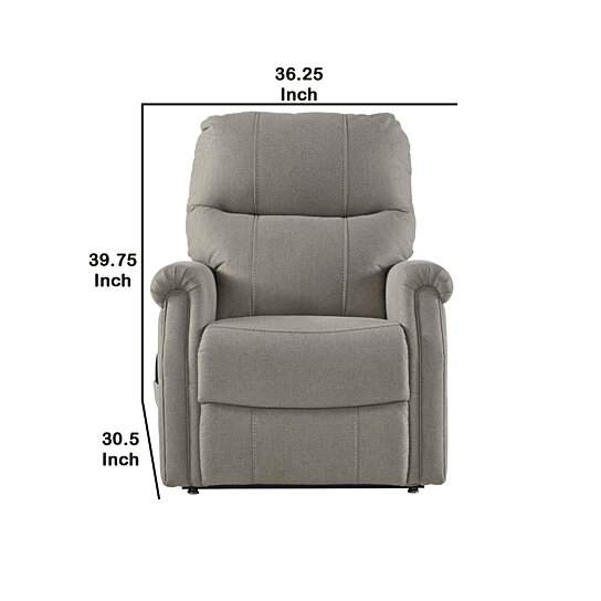 Saltoro Sherpi Fabric Upholstered Metal Frame Power Lift Recliner with Tufted Back, Gray