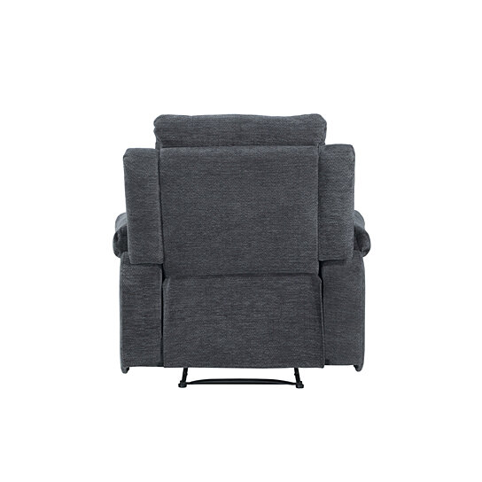 - Constructed sturdily from wood and upholstered in blue chenille fabric.