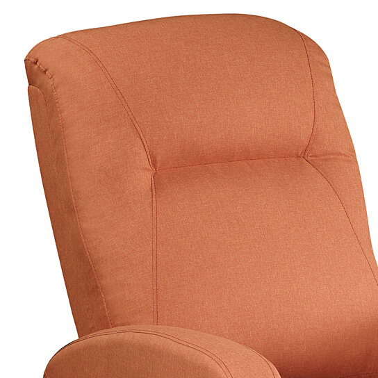 • Constructed sturdily from wood and is upholstered in orange color fabric.