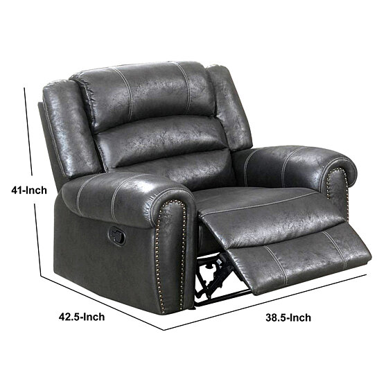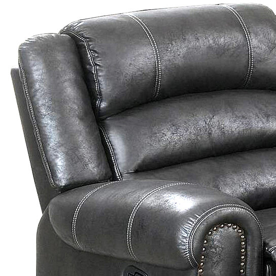 Saltoro Sherpi Nailhead Trim Fabric Upholstered Power Recliner,
