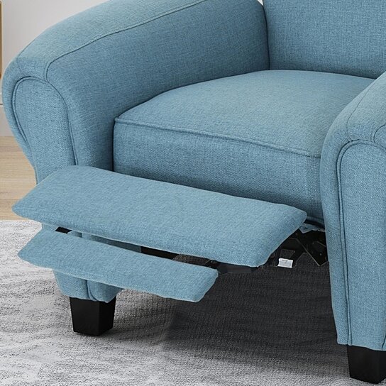 Lounge in impeccable style and extraordinary comfort on this mid-century-inspired recliner; featuring a cleanly-upholstered design, retro rollover arms, and attractive piping on the edges, this piece is versatile enough to blend in with any scheme of décor. This plush, overstuffed pushback will instantly become the heart of your living room.